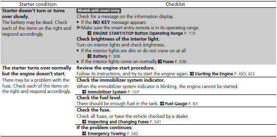 If the engine does not start, turn the ignition switch to START (e*1 and check the starter.